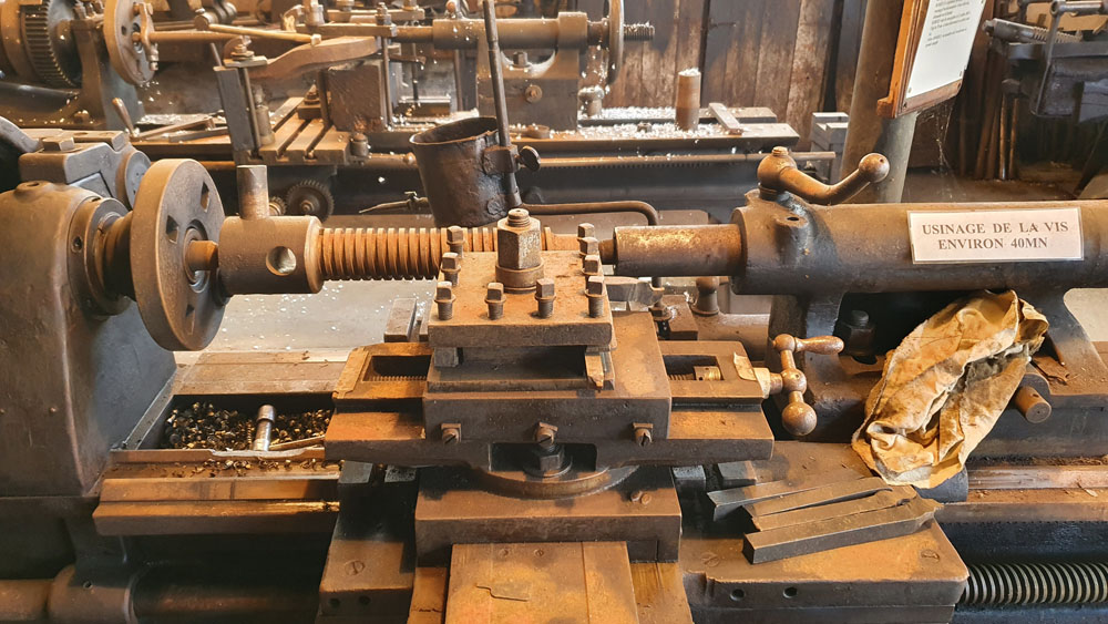 Premier atelier de 1864 à 1970 : atelier mécanique (filetage). Ce dernier est toujours en état de marche.