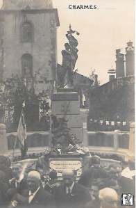 Nous inaugurons en ce jour le monument que la piété patriotique des habitants et de ses édiles a élevé aux enfants de Charmes morts pour la France , Gloire à eux ! Gloire à nos poilus qui ont remporté une victoire incomparable dont les résultats égalent les hauts sommets de l’histoire du monde.